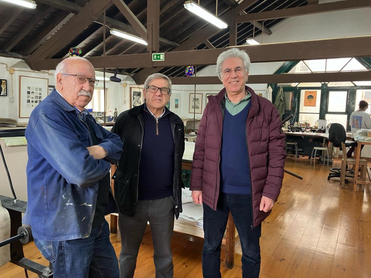 O Presidente de Direção da AEDAR Jorge Lacão foi recebido no Atelier do Centro Português de Serigrafia pelo seu Diretor João Prates e pelo Mestre Marçal na sequência da edição de uma Serigrafia da autoria de uma obra de António Colaço alusiva ao 50º aniversário do 25 de Abril que a AEDAR lançará dia 22 de Março.